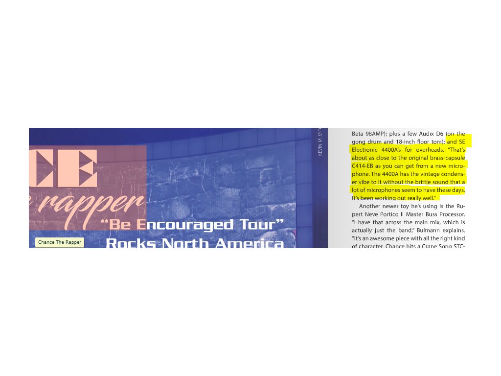 Párovaná dvojice univerzálních kondenzátorových mikrofonů sE4400a. Jedná se o univerzální studiové mikrofony s velkomembránovou vložkou, má čtyři směrové charakteristiky (kardioida, hyperkardioida, koule a osmička), dvouúrovňový HPF filter, odpružený držák se dvěma možnými způsoby uchycení, velmi vhodný i jako prostorový mikrofon pro akustickou hudbu.Doplňkové parametry