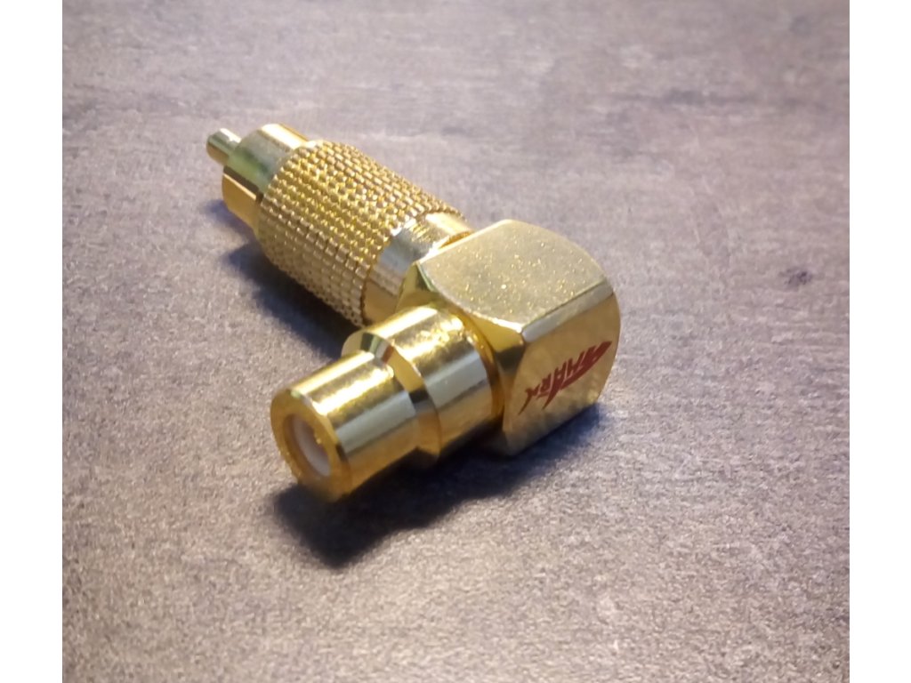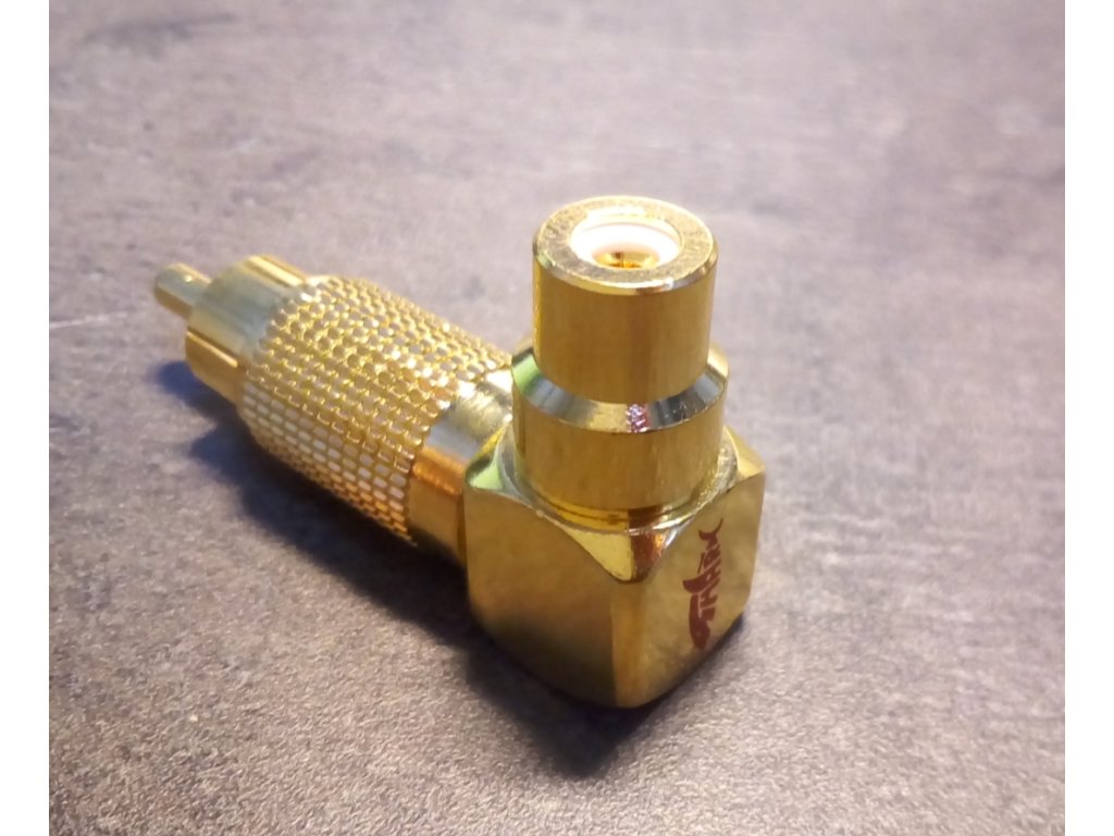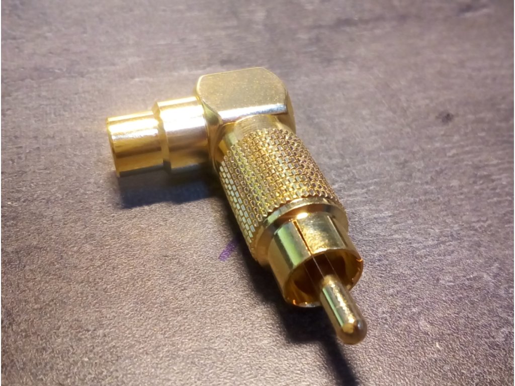 Úhlový RCA cinch konektor - adapter. Velmi kvalitní provedení. Izolace: teflon / 3~5µIN 24K zlacení celého těla konektoru. Cena za kus.Doplňkové parametry