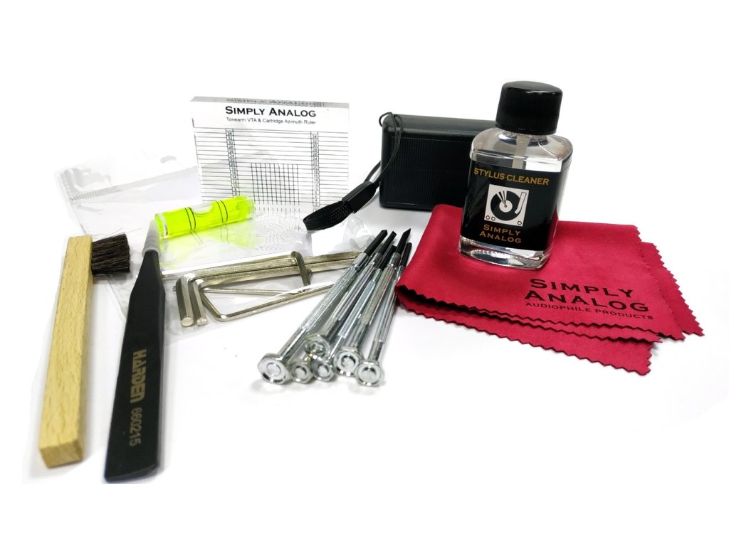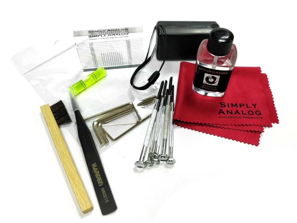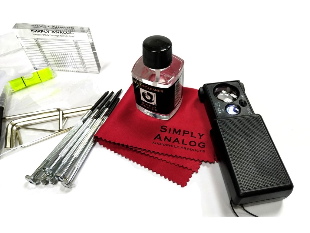 Špičková a kompletní sada k nastavení a údržbě přenosek. Jsou zahrnuty následující položky:• Akrylová VTA šablona pro snadné nastavení VTA a azimutu Azimut - kolmost chvějky přenosky vzhledem k desce při čelním pohledu na přenoskuVTA - svislý úhel přenosky (vertical tracking angle) • Přesná vodováha• Šroubovák (6 různých velikostí)• Imbusový klíč (5 různých velikostí)• Čistič hrotu 30ml• Lupa s LED světlem• Pinzeta• Stylus Brush (kartáč) z kozích chlupů pro velmi šetrné čištění• Jemná utěrka z mikrovlákna Vyrobeno v EU.Doplňkové parametry