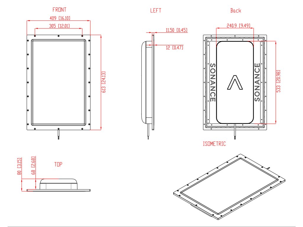 | Rozměry: | 409 x 613 x 80 mm (celkové rozměry jednoho reproduktoru, Š x V x H); 241 x 533 mm (rozměry zadní části, Š x V); 68 mm (instalační hloubka) |