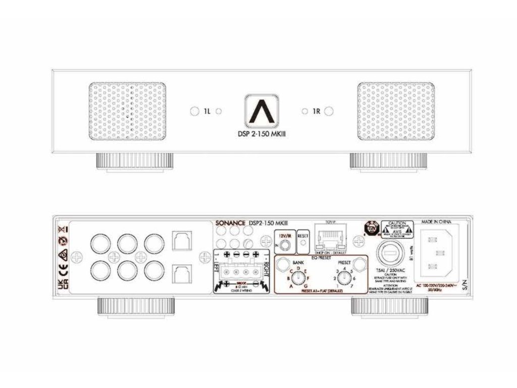 Koncový multikanálový DSP zesilovač Sonance DSP 2-150 MKIII o výkonu 150 W RMS na kanál při 8 ohmech, 224 W RMS na kanál při 4 ohmech (oba kanály zapojeny) a při můstkovém zapojení 473 W RMS na kanál při 8 ohmech. Je zkonstruován tak, aby byl menší a zároveň výkonnější než předchozí modely Sonamp. Nová řada zesilovačů DSP je vybavena technologií SonARC (Sonance Advanced Room Correction), která nabízí stovky předvoleb ekvalizéru navržených speciálně pro reproduktory Sonance. Základem každého zesilovače DSP je výkonný 24bitový/96K DAC, který dokáže zpracovat plných 4608 Kb/s audio dat. Většina zesilovačů má omezení zpracování, která omezují zvukový výstup a omezují maximální množství přecházejících informací na 1411 Kb/s, což snižuje kvalitu zážitku z poslechu. Zesilovače Sonance DSP umožňují posluchačům vychutnat si plnou čistotu a výstup jakéhokoli procházejícího zvuku, od MP3 až po plný zvuk s vysokým rozlišením. Požadavky na umístění v racku jsou 1U (poloviční šířka) s výškou zesilovače 44 mm (bez nožiček) a 54 mm s nožičkami. výkon až 473 W RMS na kanál při 8 ohmech v můstkovém zapojení frekvenční odezva 5 Hz – 50 kHz IP a IR ovládání pro maximální flexibilitu instalace kompaktní rozměry umožňují úsporu místa v racku (1U - poloviční šířka) svorkovnice pojmou až 12AWG reproduktorový kabel pro delší chod a vyšší výkon úplná řada vstupních/výstupních připojení pro maximální instalační flexibilitu ethernetový konektor pro připojení k síti Koncový multikanálový DSP zesilovač Sonance DSP 2-150 MKIII o výkonu 150 W RMS na kanál při 8 ohmech, 224 W RMS na kanál při 4 ohmech (oba kanály zapojeny) a při můstkovém zapojení 473 W RMS na kanál při 8 ohmech. Je zkonstruován tak, aby byl menší a zároveň výkonnější než předchozí modely Sonamp. Nová řada zesilovačů DSP je vybavena technologií SonARC (Sonance Advanced Room Correction), která nabízí stovky předvoleb ekvalizéru navržených speciálně pro reproduktory Sonance. Základem každého zesilovače DSP je výkonný 24bitový/96K DAC, který dokáže zpracovat plných 4608 Kb/s audio dat. Většina zesilovačů má omezení zpracování, která omezují zvukový výstup a omezují maximální množství přecházejících informací na 1411 Kb/s, což snižuje kvalitu zážitku z poslechu. Zesilovače Sonance DSP umožňují posluchačům vychutnat si plnou čistotu a výstup jakéhokoli procházejícího zvuku, od MP3 až po plný zvuk s vysokým rozlišením. Požadavky na umístění v racku jsou 1U (poloviční šířka) s výškou zesilovače 44 mm (bez nožiček) a 54 mm s nožičkami. výkon až 473 W RMS na kanál při 8 ohmech v můstkovém zapojení frekvenční odezva 5 Hz – 50 kHz IP a IR ovládání pro maximální flexibilitu instalace kompaktní rozměry umožňují úsporu místa v racku (1U - poloviční šířka) svorkovnice pojmou až 12AWG reproduktorový kabel pro delší chod a vyšší výkon úplná řada vstupních/výstupních připojení pro maximální instalační flexibilitu ethernetový konektor pro připojení k sítiDoplňkové parametry