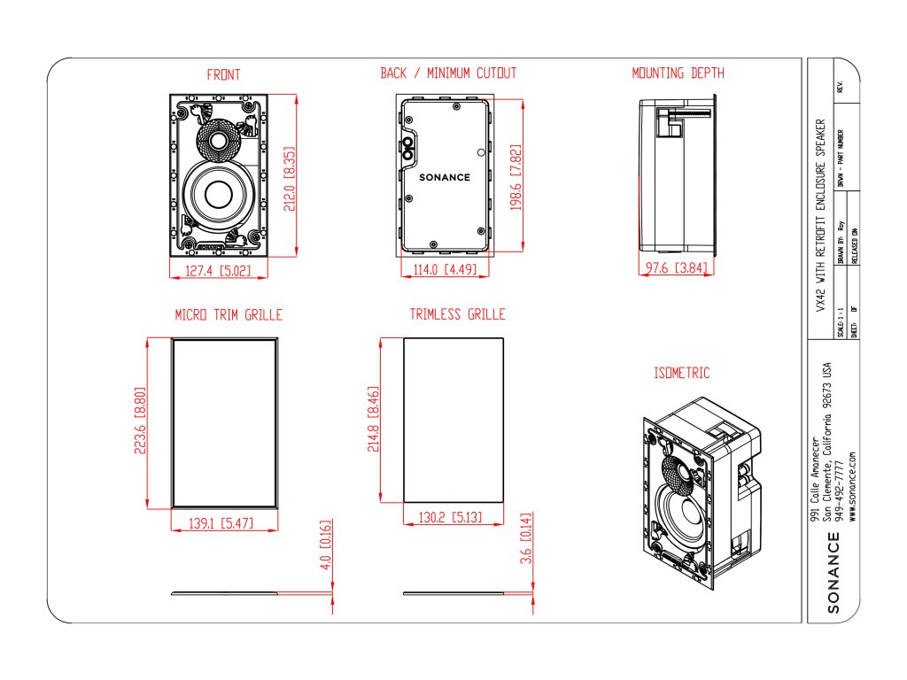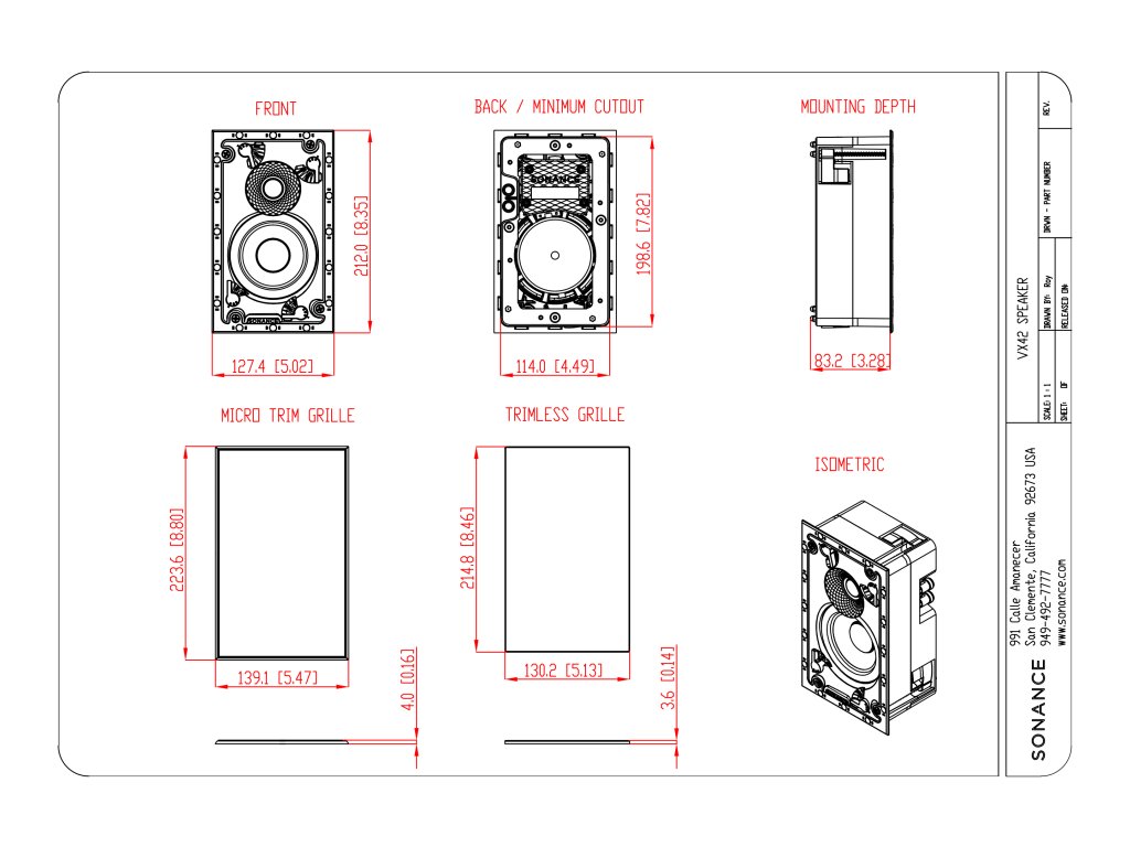 | Rozměry: | 139.1 x 223.6 mm (Micro Trim mřížka), 130.2 x 214.8 mm (bezrámečková mřížka), 83.2 mm (instalační hloubka), 97.6 mm (instalační hloubka pro Retrofit Enclosure) |