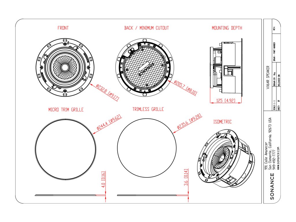 | Rozměry: | 244.4 mm (průměr, Micro Trim mřížka), 235.6 mm (průměr, bezrámečková mřížka), 244.4 x 244.4 mm (čtvercová Micro Trim mřížka), 235.6 x 235.6 mm (čtvercová bezrámečková mřížka), 125 mm (instalační hloubka), 146.1 mm (instalační hloubka pro Retrofit Enclosure) |