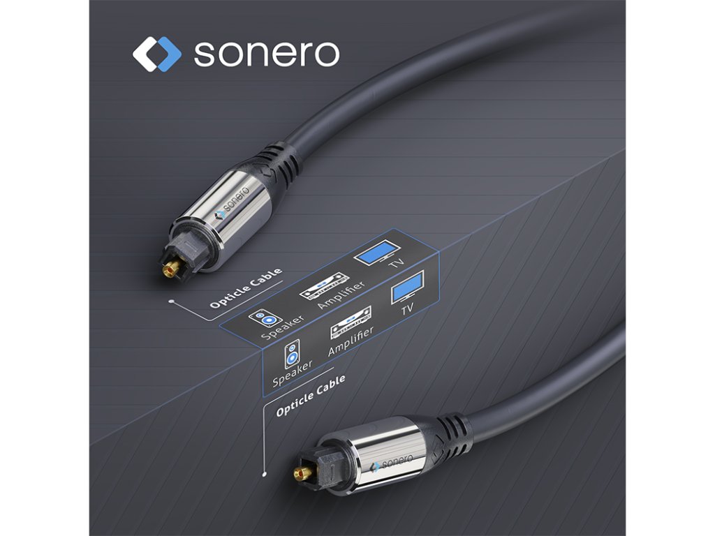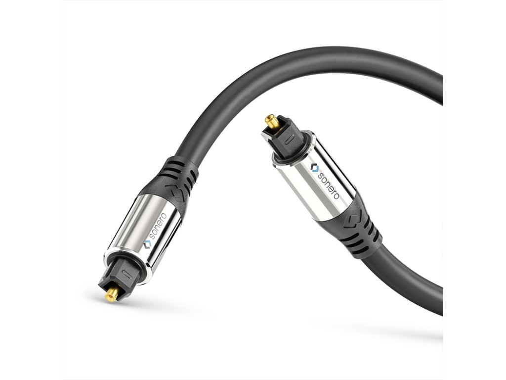 Sonero S-OC100 prémiový optický S/PDIF Toslink kabel s rovnými konektory S-OC100 je prémiový Toslink audio kabel pro přenos digitálních a optických S/PDIF signálů. Kabel je vybaven pozlacenou špičkou konektoru a pochromovanými hliníkovými konektory. Kabel má rovné S/PDIF Toslink konektory na obou stranách. Vysoce kvalitní vnitřní optické vlákno má průměr 1 mm, 2.4 mm PE stínění a PVC povrch s celkovým vnějším průměrem 6 mm. Optický audio kabel umožňuje optimální a odolnou kvalitu přenosu a je vhodný pro připojení digitálních audio zařízení pomocí optického S/PDIF připojení. Vlastnosti: Přenos digitálních audio signálů přes S/PDIF Toslink Pozlacená špička konektoru, pochromované hliníkové konektory, flexibilní ohyb S/PDIF Toslink samec, rovný na S/PDIF Toslink samec, rovný 1 mm optické vlákno, 2.2 mm PE stínění, PVC povrch, Ø 6 mm Spolehlivá a odolná kvalita přenosu pro například domácí kino, AV receivery a další Dostupné délky: 1 m, 1,5 m, 2 m, 3 m, 5 m, 7,5 m, 10 m, 15 m, 20 mDoplňkové parametry