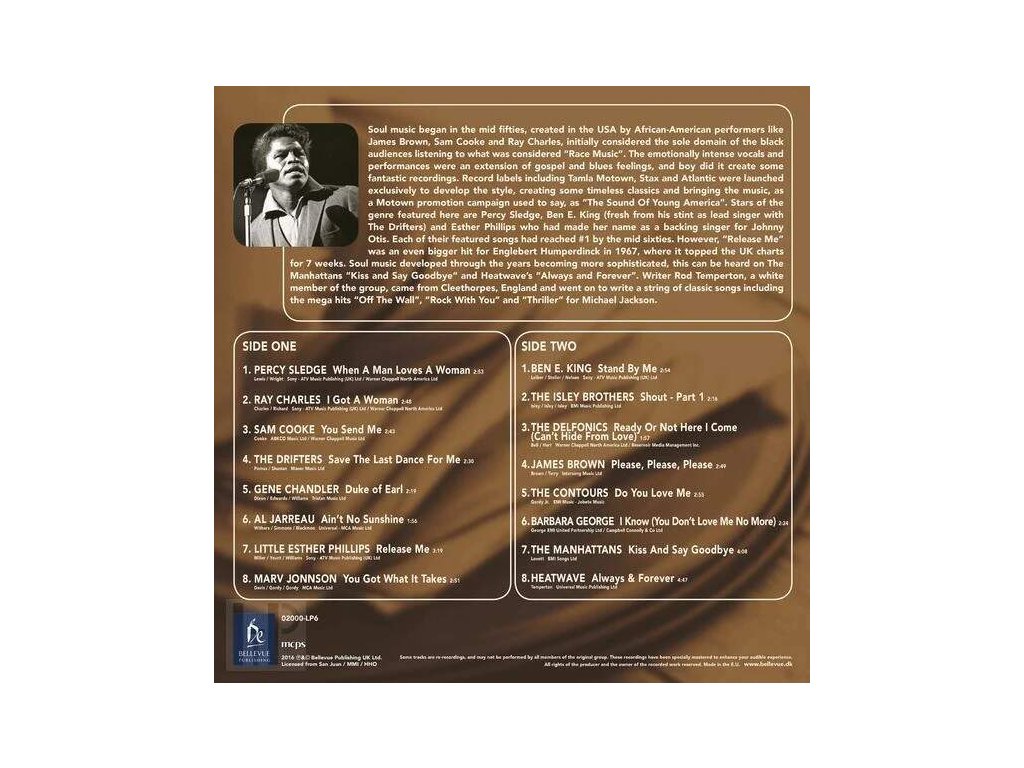 Ultimate Divas MARATHON MEDIA INTERNATIONAL 140g, Reference master vinyl, Limited edition, 100 % analogové album s referenční zvukovou kvalitou- Analog Experience Exkluzivní obal a příslušenství podtrhuje výjimečnost těchto nahrávek od MARATHON MEDIA INTERNATIONAL / Economic label Side A When a Man Loves a Woman - Percy Sledge I Got a Woman - Ray Charles You Send Me - Sam Cooke Save the Last Dance for Me - The Drifters Duke of Earl - Gene Chandler Ain't No Sunshine - Al Jarreau Release Me - Little Esther Phillips You Got What It Takes - Marv Jonnson Side B Stand By Me - Ben E. King Shout - Part 1 - The Isley Brothers Ready Or Not Here I Come (Can't Hide from Love) - The Delfonics Please, Please, Please - James Brown Do You Love Me - The Contours I Know (You Don't Love Me No More) - Barbara George Kiss and Say Goodbye - The Manhattans Always & Forever - HeatwaveDoplňkové parametry