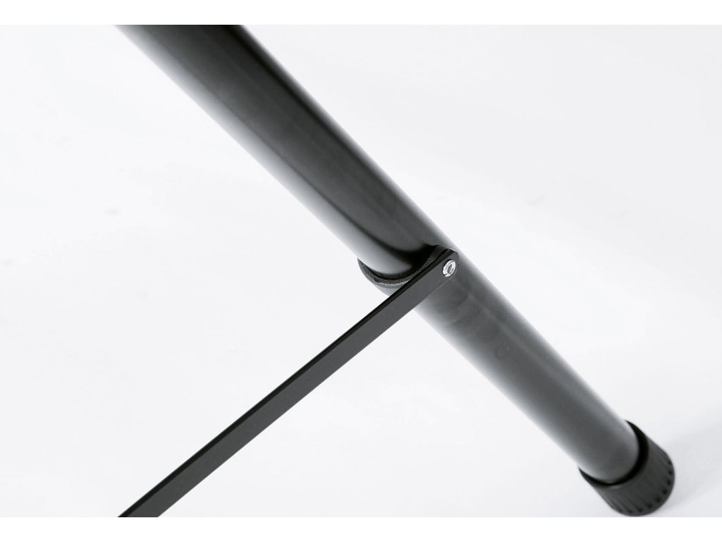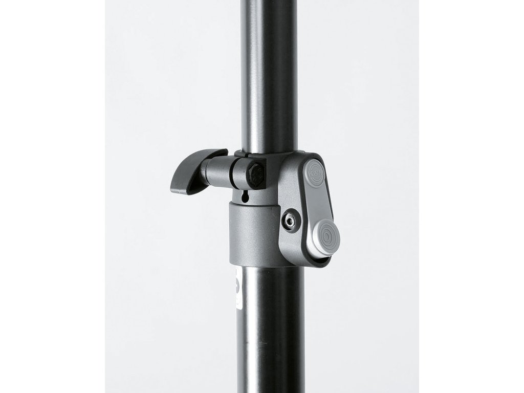 Lehký výsuvný hliníkový reproduktorový stojan s nosností 40 kg. Výška stojanu 1430/2240 mm. Postupné nastavení výšky pomocí tlačítka s možností aretace. Vyrábí se v černé barvě.