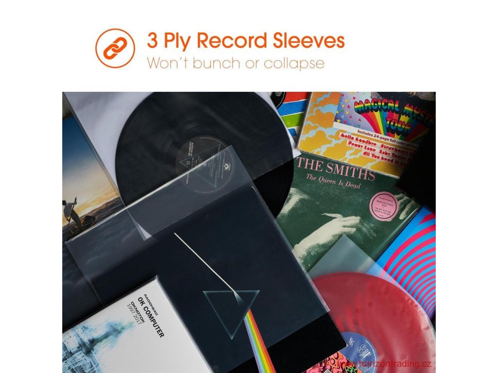 Audiophile Grade Archive - vnitřní obaly vysoké kvality, které také využívají audiofilní nahrávací společnosti. Dokonalé vnitřní obaly pro vaše vinylové desky s názvem Audiophile. Tyto super tenké vnitřní rukávy mají tenkou vrstvu rýžového papíru vloženou mezi dva listy hladkého antistatického polyethylenu s vysokou hustotou, aby se zabránilo poškrábání a přitahování prachu. Jsou hedvábně hladké na vnější i vnitřní straně. Jakmile použijete tyto audiofilní rukávy, je těžké se vrátit k něčemu jinému! Pro ty, kteří milují obaly značky Mofi.... Ultra Premium s nejvyšší možnou kvalitou Audiophile Vnitřní obaly jsou vhodné pro archivaci LP vinylových desek Antistatické, Anti Dust, Anti Scratch obaly Odolné proti UV záření a chrání tak umělecká díla před vyblednutím času Snadno zasunete Špičková kvalita na trhu za bezkonkurenční cenu Vyrobené z vysoce kvalitního HDPE / rýžového papíru. Tyto gramofonové obaly nabízejí vysoce kvalitní, ale cenově dostupnou náhradu za papírové návleky a vynikající doplněk pro lepené vnitřní LP obaly.Triple Layered - rýžový papír vložený mezi dvě vrstvy antistatického HDPE udržuje vaše záznamy antistatické a bez kontaminace.Kvalita archivu - nejvyšší možná kvalita provedení - Audiophile řadaSnadné použití - perfektní velikost, která nahradí nebo doplní vnitřní obalyJemný - hladký na dotek, nepoškrábe vaše LP ani nezanechá usazeniny nečistotAnti-Static - Naše HDPE obaly jsou přirozeně anti-static. Nejsou potřeba žádné fantastické antistatické zbraně, atd.....Silný- vysoce kvalitní HDPE udržuje stále stejný tvar i rozměrCo je špatného na papírových a kartonových obalech? Papírové rukávy se mohou v průběhu času rozkládat a na vašem záznamu zůstanou nečistoty. Papírové a lepenkové rukávy (zejména karton) mohou být velmi „drsné“ a po vyjmutí desky mohou na vašich LP zanechat škrábance a nečistoty. Papírové obaly nejsou antistatické. "Nabité" LP desky pak přitahují nečistoty, které je třeba eliminovat. Tím může být výrazně ovlivněna kvalita přehrávání a praskání. Made in China 1 balení = 100 ks obalůDoplňkové parametry