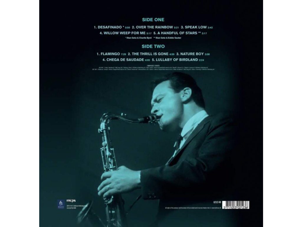 Stan Getz - The Sound MARATHON MEDIA INTERNATIONAL 2LP, 180g, Reference master vinyl, Limited edition, 100 % analogové album s referenční zvukovou kvalitou- Analog Experience Exkluzivní obal a příslušenství podtrhuje výjimečnost těchto nahrávek od MARATHON MEDIA INTERNATIONAL SIDE ONE:1. Desafinado2. Over The Rainbow3. Speak Low4. Willow Weep For Me5. A Handful Of Stars SIDE TWO:1. Flamingo2. The Thrill Is Gone3. Nature Boy4. Chega De Saudade5. Lullaby Of BirdlandDoplňkové parametry