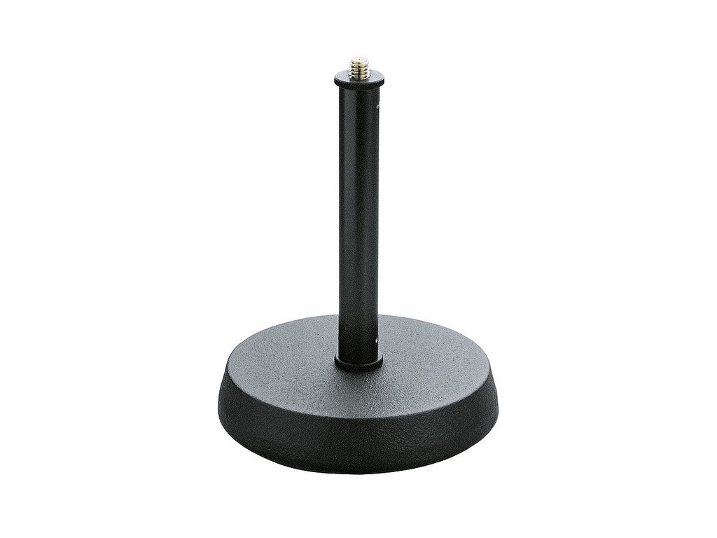 Stolní mikrofonní stojánek s nástavcem. Litinový podstavec o průměru 130 mm má antivibrační gumovou vložku. Výška stojánku 175 mm. Vyrábí se v černé barvě.
