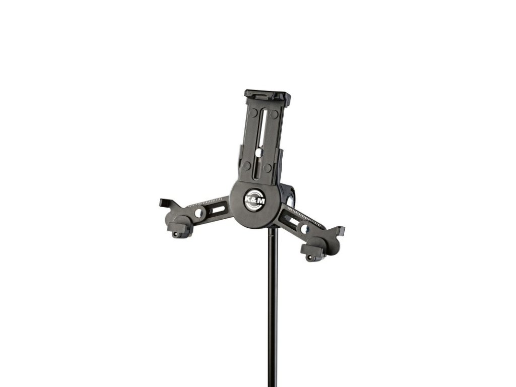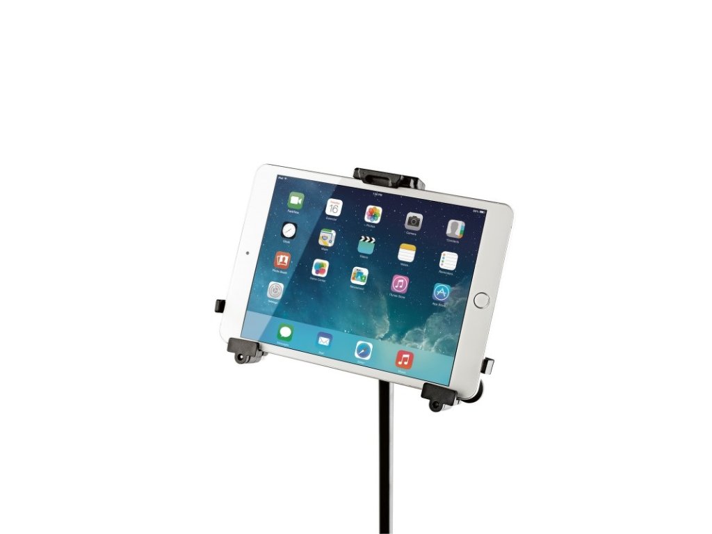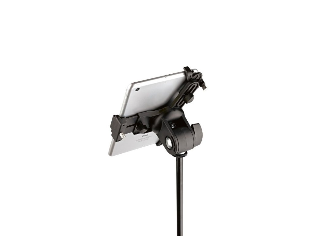 Univerzální držák na tablet, který lze díky 3/8" závitu připevnit rychle a jednoduše k jakémukoliv mikrofonnímu stojanu. Individuálně nastavitelná opěrná ramena umožňují použití tablet s výškou 163/242 mm a šířkou 102/189 mm (např. iPad mini, iPad Pro 9.7, Amazon Fire HDX 8.9, Google Nexus 9). Hloubka tabletu 5/11 mm. Nastavení opěrného ramene se provádí nastavením upínacích šroubů na velikost a hloubku tabletu. Pro jiná použití lze tablet rychle a jednoduše připevnit a odpojit pomocí západkového zámku, což poskytuje maximální flexibilitu a mobilitu. Nastavení náklonu, horizontální i vertikální polohy. Tablet využijete na jevišti, ve zkušebně i doma. Vyrábí se v černé barvě.