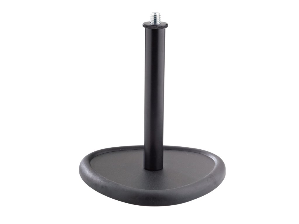 Stolní mikrofonní stojánek v atraktivním designu. Trojhúhelníkový podstavec o průměru 137 mm má antivibrační gumovou vložku. Výška stojánku 152 mm. Vyrábí se v černé barvě.