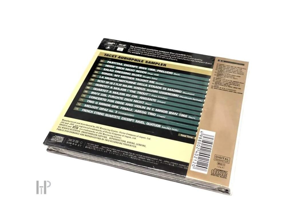 XRCD24 / k2 Technology / Japan Digital Remaster JVC – VICJ-028-1081, XRCD24 – VICJ-028-1081 Genre: Classical Tracklist: 1 Partitas. Excerpt: Bwv 1006, Preludio (Bach) 2 Heiss' Mich Nicht Reden (Hugo Wolf) 3 Salad Dressing Blues (Douglas Sides) 4 Songs, My Mother Taught Me (Dvorak) 5 La Musica Notturne Della Strade DI Madrid (Boccherini) 6 Octet Op.20 E Flat Major, Scherzo, Allegro Leggierissimo (Mendelssohn-Bartholdy) 7 Quintet A Major "The Trout" (Franz Schubert) 8 Quartet A Major Kv 298, Andante (Mozart) 9 Bwv 226, Furchte Dich Nicht (Bach) 10 Concerto For Oboe And Violin In C Minor Bwv 1060 (Bach) 11 Trio G Minor Op.8, Finale, Abegg Trio (Chopin) 12 Melody Op.42 No.3 (Tchaikovsky) 13 French String Quartets, Excerpt: Ravel, Quatuor (Maurice Ravel)Doplňkové parametry