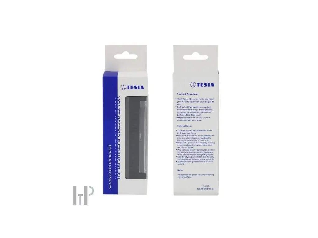 Řada Premium od značky TESLA je vynikající kolekce přípravků pro péči o gramofonové desky a přenoskové hroty, které uspokojí potřeby každého milovníka vinylu. TESLA je tradiční česká značka = dobře nás znáte TESLA je s vámi od roku 1946 /včetně podniku ELEKTRA od roku 1921/ = za tuto dobu jsme vyprodukovali mnoho legendárních modelů, např. NC-450, NC-500, MC-600Q, AZS-222, AZS-223, SM-260, SM-261, některé do dnešních dnů používáte doma TESLA produkty jsou zárukou skvělé hodnoty za investované peníze = tak tomu bylo v minulosti a bude i nadále TESLA reprosoustavy, gramofon, audio kabely, příslušenství, to vše je dílem českých inženýrů a vyrábí se ručně v České republice = zakoupením podporujete domácí firmu TESLA produkty určené k čistění desek & přenosek nabízíme ve dvou řadách, jedna je vyráběna v EU a druhá v Asii = každý si vybere dle své potřeby a možností TESLA, divize hi-fi, má sídlo v Praze 10, ve Strašnicích, tedy tam, kde to původně všechno začalo a stojí za ní konkrétní lidé, Češi = víte, kam a na koho se obrátit TESLA, divize hifi, má v ČR tři manufaktury, jednu v Čechách a dvě na Moravě = stále jsme šikovní a máme co ukázat Do ruky perfektně padnoucí tvar kartáčku TESLA se super měkkým čisticím polštářem ze sametu opatrně odstraňuje prach a nečistoty z povrchu vaší vinylové desky. Vyčistěte své vinylové desky od nečistot pomocí přírodních antistatických vlastností tohoto super měkkého sametového čisticího kartáče. Když čistíte LP desku, samet vybije statickou elektřinu a uvolní prach z vnitřních drážek, aby vám poskytl svěží a čistě znějící zvuk. Součástí sady jsou dva menší kartáčky, carbonový stylus brush pro suché čištění a nylonový stylus brush pro mokré čištění. Oba efektivně vyčistí stylus přenooky od nahromaděného odpadu. Jak používat: Vyberte si svou oblíbenou vinylovou desku ze své sbírky. Umístěte ji na gramofon a začněte otáčet. Jemně přiložte kartáč směrem ven ze středu desky. Pravidelným používáním této sady TESLA udržujete gramofonové desky v dobré kondici, čímž podporujete ničím nerušený poslech bez praskání a také prodlužujete životnost diamantového hrotu přenosky. Znečištění, kterému jsou desky i přenosky vystaveny výrazně snižuje jejich životnost a následně kvalitu zvuku. Zřejmě každý zná praskání při přehrávání gramofonových desek. Jeho příčinu často svalujeme na stáří desek. Ve většině případů se však jedná o znečištěnou desku nebo přenosku. Praskání je způsobeno nečistotami a prachem, které k povrchu desky přitahuje statická elektřina. Pro dokonalý analogový poslechový zážitek se neobejdete bez pravidelné údržby gramofonových desek a diamantového hortu přenosky, a to je komplexní proces vyžadující více přípravků. K čištění povrchů gramofonových desek slouží čistící přípravky TESLA, které dstraňují z povrchu desek nečistoty, zbavují desku elektrostatického náboje, čímž se snižuje rychlost nabalování nečistot na její povrch. To samé platí pro přenosku, čistý a kvalitní zvuk zajišťuje čistý hrot přenosky. Jakmile přestane být přehrávaný zvuk kvalitní a čistý, je nutné hrot přenosky očistit přípravky TESLA. (v případě mechanického opotřebení hrotu přenosky je nutné jej vyměnit za nový)Doplňkové parametry