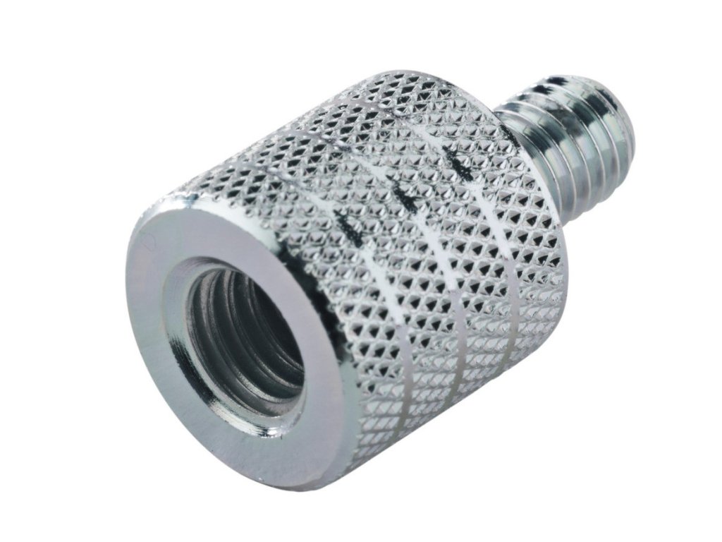 Pozinkovaná redukce s vroubkovaným povrchem mezi mikrofonní stojan a mikrofonní klipsnu. Závit s vnějším pvůměrem 18 mm x 30 mm, 3/8" F - M8 x 12 mm M.