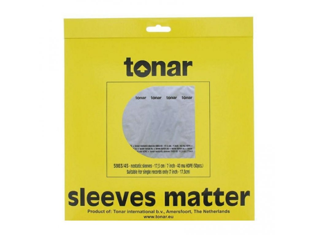 Kvalitní antistatické vnitřní obaly na 7" SP desky Jedno balení obsahuje: 50 kusů vnitřních obalů 40 mikronů silné HDPE Antistatická úprava Zakulacené pro snadné ukládání Určeno pro 7" (17 cm) SP deskyDoplňkové parametry