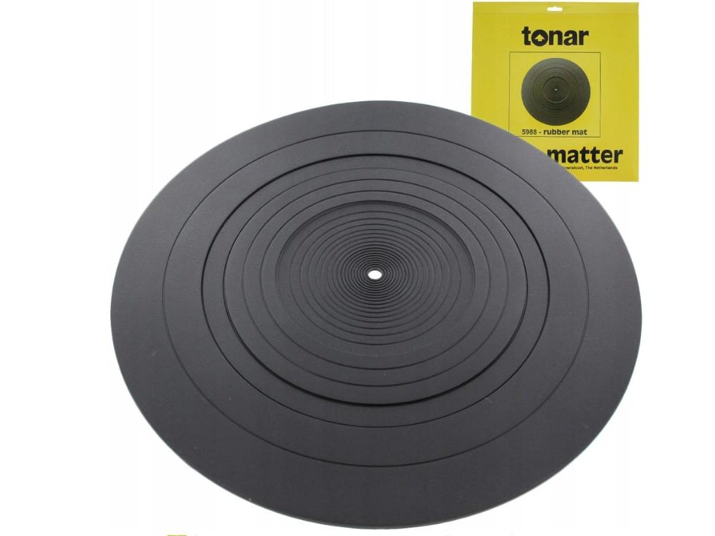 Zcela nový antivibrační protiskluzový pryžový slipmat Vysoká odolnost proti opotřebení Antivibrační a stabilní Antistaticky upravený Vnější průměr: 298 mm Tloušťka: 4 mm Barva: černá Designed and Engineered by TonarDoplňkové parametry