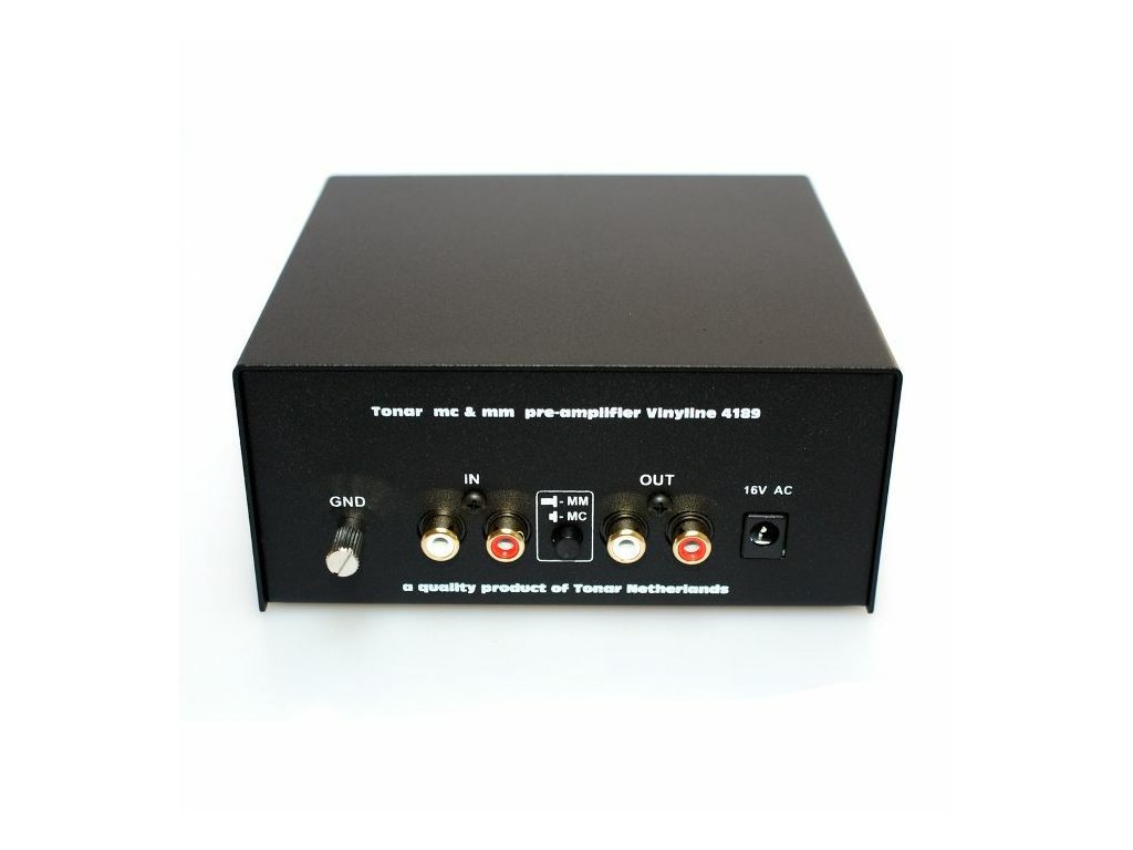 Phono MM - MC předzesilovač pro gramofonové přístroje Předzesilovač Tonar Vinyline phono MC/MM je cenově dostupným řešením pro přenosky nejvyšší kvality se systémem MM i MC na vstup AUX vašeho zesilovače. Tlačítko přepínání je umístěno na zadním panelu. Napájení je oddělené. Technické specifikace: Vstupní impedance: MM: 47k Ohm / 100pF, MC: 100 Ohm / 100pFVýstupní napětí: 200mV / 1kHzs MM vstupem 5,00mV / 1kHzs MC vstupem 0,45mV / 1kHz Zisk: MM 32dB, MC 53dBSignál / šum: MM: -88dB MC: -79dBZkreslení: THD: 0,005%RIAA-vyrovnávací křivka s přesností: 20 Hz - 20 kHz / max. 0,5dBNapájení: 16 V / 200 mA - AC adaptér je součástí dodávkyDoplňkové parametry