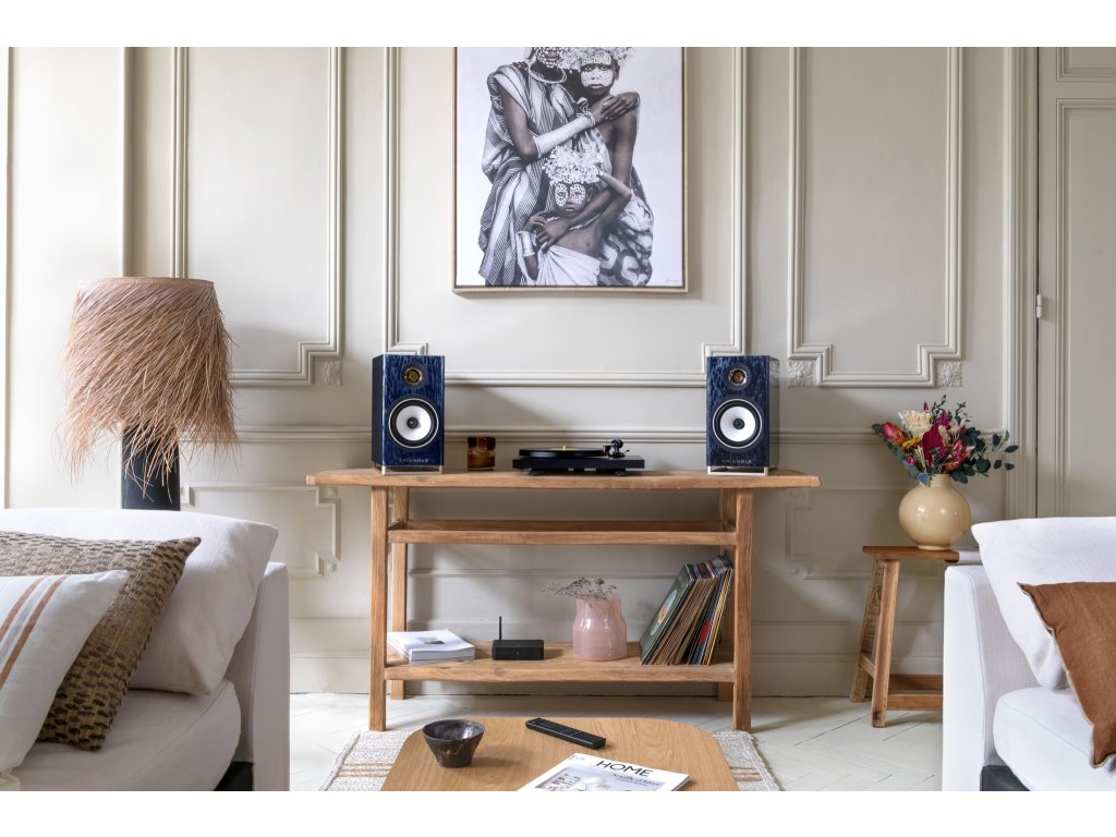 Luxusní bezdrátový hi-fi systém Triangle Capella nabitý nejmodernějšími technologiemi, akustickými znalostmi a řemeslným zpracováním. Tento francouzský skvost přinese až 200 W čistého zvukového výkonu, které přizpůsobí vaší místnosti díky zabudovanému softwaru pro korekci akustiky. Hudbu přehrajete bezdrátově, pomocí moderního hi-res streamera s podporou AirPlay, Chromecast, Roon a dalších. Nebo připojte Capella ke svému stávajícímu přehrávači pomocí bohaté výbavy fyzických portů, včetně HDMI ARC pro pohodlné připojení k TV. Navenek se Capella pyšní úchvatnou lakovanou skříní ve čtyřech barevných provedeních: nebeská modrá, mlhavá hnědá, hvězdná černá a vesmírná bílá. Ultralesklý lak ukrývá vznešenou texturu ořechového dřeva, které odhaluje všechny své nuance a barevné kontrasty v závislosti na světelných podmínkách a úhlu, jakým se na něj díváte. Jemné křivky reproduktoru plynule přesahují do hliníkového podstavce v provedení Champagne, který dokonale komplementuje estetickou i akustickou stránku tohoto mistrovského díla. Technologie budoucnosti Pod elegantním zevnějškem se skrývá ten nejpokročilejší aktivní reproduktor, jaký Triangle vyrobil. Streamujte svoji oblíbenou hudbu ve vysokém rozlišení pomocí nejpopulárnějších služeb jako Apple Music, Tidal, Spotify nebo Roon. Vše z pohodlí vašeho chytrého telefonu, tabletu nebo počítače. Součástí je také podpora AirPlay 2, Chromecast, UPnP/DLNA, WiSA a Bluetooth. Vysoce všestranný systém Jádrem celého systému Capella je Stereo Hub, který soustřeďuje všechny vstupy do jednoho kompaktního boxu. Připojte své analogové nebo digitální zdroje do Hub-u a ten je bezkabelově přenese do reproduktorů ve vysokém rozlišení a bez viditelného zpoždění. Reproduktory jsou tak zbaveny nevzhledných kabelů a vy je můžete umístit kdekoli v místnosti, nezávisle na zdroji hudby. Luxusní domácí kino Připojte televizor k systému Capella pomocí HDMI a užijte si vaše oblíbené filmy a seriály v nepřekonatelné kvalitě. Díky technologiím ARC a CEC bude ovládání celé sestavy hračkou. Pro úplnou eliminaci kabelů je na palubě i technologie WiSA, se kterou bezdrátově propojíte reproduktory s jakýmkoli podporovaným zařízením. Kalibrace místnosti Akustika místnosti a umístění reproduktorů mají zásadní vliv na zážitek z poslechu. Díky technologii automatické kalibrace můžete snadno provést měření ve své poslechové místnosti a aplikace Triangle Capella pak upraví zvukovou odezvu reproduktorů tak, aby ji přizpůsobila přesně vašemu prostoru.*Kalibrace místnosti je k dispozici se zabudovanými mikrofony zařízení Apple. Smartphone/tablety se systémem Android vyžadují použití doplňkového mikrofonu Zen. Vyladěná amplifikace Samotnou reprodukci zvuku zajišťují firemní měniče, které pohání sestava zesilovačů třídy D o celkovém výkonu až 200 W. K rozdělení frekvenčního pásma dochází ještě před finálním zesílením, což dramaticky přispívá ke zlepšení efektivity a tonální kontroly. Přesně toho využívá zabudovaný DSP procesor, který neustále monitoruje chování měničů pro dosažení plného potenciálu tohoto systému. Osvědčené měniče Reproduktory Capella byly inspirovány limitovanou edicí Esprit 40th, čehož důkazem jsou i 25 mm výškové měniče ze slitiny hořčíku a hliníku. Očekávat můžete harmonické podání vysokých frekvencí bez sebemenšího náznaku agresivity. O střední a basové pásmo se starají 160 mm měniče využívající membránu z přírodní celulózy, která je charakteristickým znakem reproduktorů Triangle. Inovativní bassreflex Tradiční reproduktory s basovým portem na zadní straně jsou nesmírně citlivé na vhodné umístění od zdi. Triangle Capella využívá inovativní basreflex, který ústí směrem dolů, díky čemuž je můžete umístit kamkoli, aniž by to ovlivnilo reprodukci basů. Pevná hliníková základna, na které jsou reproduktory umístěny, umožňuje volné proudění vzduchu kolem portu bassreflexu pro rovnoměrnou distribuci spodních frekvencí. Absorpční systém DVAS DVAS (Driver Vibration Absorption System) je proprietární systém vyvinutý inženýry Triangle, který pohlcuje vibrace vznikající pohybem silných basových měničů. Regálové reproduktory Capella jsou vybaveny vnitřními výztuhami z MDF a EVA pěny, které jsou umístěny proti basovým měničům, aby zabraňovaly zbytkovým vibracím směřujícím do skříně reproduktoru. Prémiové zpracování Navenek se Capella pyšní úchvatnou lakovanou skříní ve čtyřech barevných provedeních. Ultralesklý lak ukrývá vznešenou texturu ořechového dřeva, které odhaluje všechny své nuance a barevné kontrasty v závislosti na světelných podmínkách a úhlu, jakým se na něj díváte. Jemné křivky reproduktoru plynule přesahují do hliníkového podstavce v provedení Champagne, který dokonale komplementuje estetickou i akustickou stránku tohoto mistrovského díla. Doplňkové stojany Umístěte reproduktory Capella na volitelné stojany Triangle S05 pro ten nejlepší zážitek. Základna reproduktoru dokonale zapadá do horního podstavce stojanu, což zajišťuje bezpečné umístění v ideální výšce k poslechu. Stojany S05 jsou k dispozici v několika povrchových úpravách, které dokonale ladí k provedením reproduktorů Capella. Luxusní bezdrátový hi-fi systém Triangle Capella nabitý nejmodernějšími technologiemi, akustickými znalostmi a řemeslným zpracováním. Tento francouzský skvost přinese až 200 W čistého zvukového výkonu, které přizpůsobí vaší místnosti díky zabudovanému softwaru pro korekci akustiky. Hudbu přehrajete bezdrátově, pomocí moderního hi-res streamera s podp