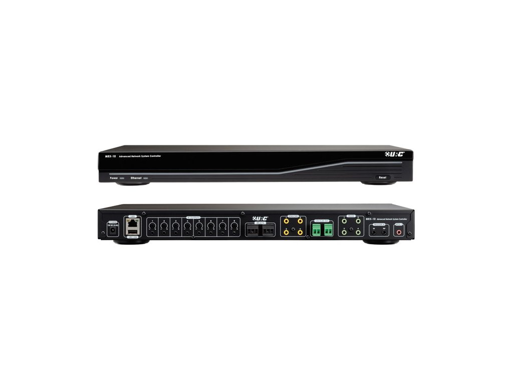 MRX-10 je síťový kontrolér, další ze série Total Control systém - ideální pro rezidenční nebo komerční projekty. Umožní komunikaci přes IP, IR, RS-232, použití řady čidel, relé a 12V spínání. Programování pomocí Total control Accelerator 3 Expressway. Dvoucestná komunikace, ideální pro středně velké projekty. Jako ovladač je možno použít firemní ovladače, dotykové ovladače, klávesnice nebo mobilní aplikace. Programování lze provést on-line nebo vzdáleně. Aplikace hlasových povelů s Amazon Alexa a Google Assistant. Umístění kontroléru je možné na viditelném i skrytém místě. Síť RJ45 10/100 GB, dvoucestná komunikace IR 8x IR port RS-232 4x port RS-232 pro dvoucestnou komunikaci Sensor 4x port pro připojení libovolného URC sensoru Relé 2x relé, komfigurovatelné USB 1x .5V USB port Indikace napájení a EthernetDoplňkové parametry