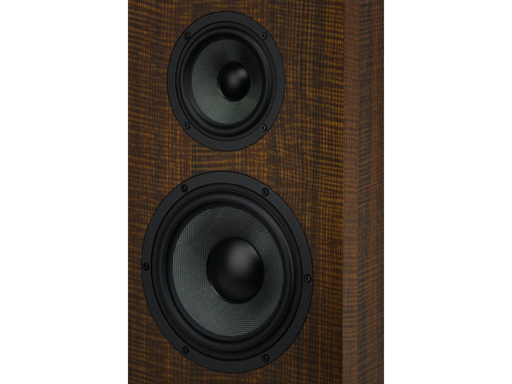 - 1palcový textilní výškový reproduktor je umístěn na velkém čelním panelu s logem značky se stylizovaným mosazným písmenem "W". Středotónový reproduktor je 5½palcový (130 mm) s kevlarovou membránou a pevnou, bezrezonanční konstrukcí z hliníkového odlitku. Nízkofrekvenční jednotka je na moderní poměry velká, 8palcová (200 mm), rovněž vyrobená z hliníku s kevlarovou membránou.
