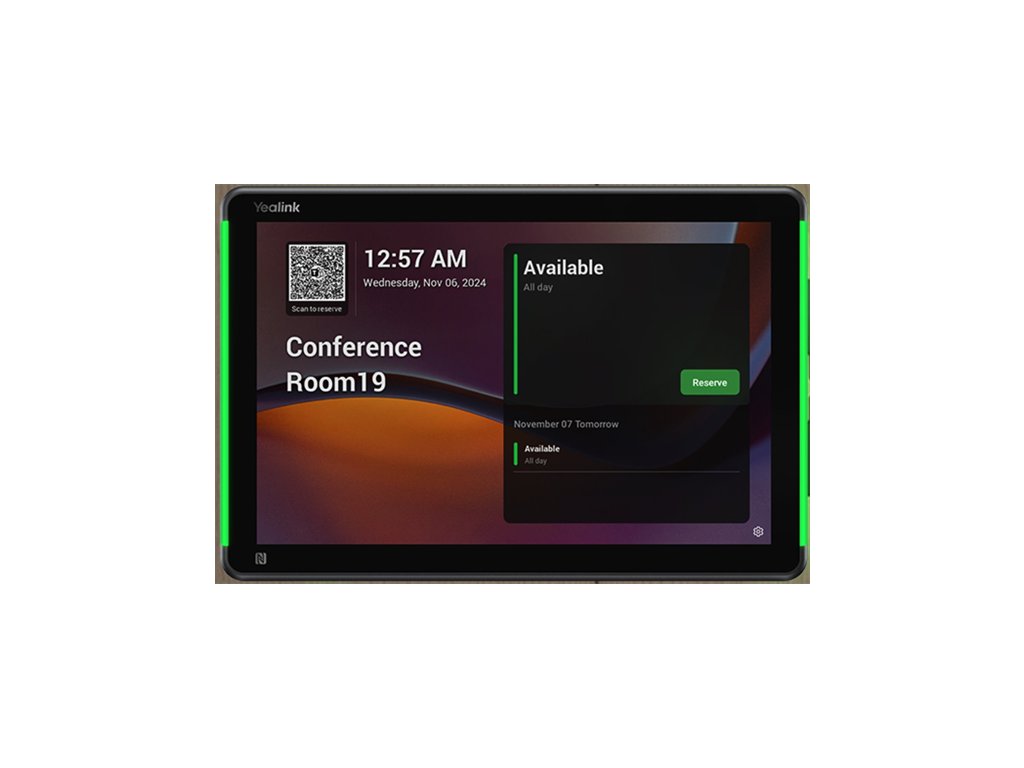 Profesionálny 8" dotykový panel s kapacitným displejom (rozlíšenie 1280 × 800 px), navrhnutý na zobrazovanie stavu zasadacích miestností Beží na výkonnom operacnom systéme Android 12 pre rýchlu odozvu a spolahlivý chod Oficiálna podpora pre Microsoft Teams Rooms a Zoom Rooms ako plánovací zobrazovací panel (synchronizácia s kalendárom) RGB LED pás integrovaný v hornej casti zariadenia vizuálne indikuje stav miestnosti (volná, obsadená, coskoro rezervovaná) Vstavaný PIR senzor detekuje pohyb pred miestnostou, co umožnuje dynamickú aktualizáciu obsadenosti Senzor okolitého osvetlenia automaticky upravuje jas displeja pre optimálnu citatelnost a úsporu energie Teplotný senzor monitoruje klímu v priestore – využitelné v rámci inteligentného riadenia budov Duálny mikrofón a reproduktor s podporou hlasových asistentov ako Microsoft Cortana a Amazon Alexa (volitelné použitie) Pripojenie cez Ethernet s podporou PoE (Power over Ethernet) alebo bezdrôtovo cez Wi-Fi (2.4/5 GHz), Bluetooth 5.0 taktiež k dispozícii Montáž na stenu alebo sklo pomocou dodávanej montážnej súpravy; zabezpecenie proti krádeži cez zámok Kensington Nízka spotreba energie, certifikácie Energy Star a EPEAT pre ekologickú prevádzku v moderných kanceláriách Elegantný a moderný dizajn s tenkým profilom, vhodný do korporátnych priestorov a zasadaciek Profesionálny 8" dotykový panel s kapacitným displejom (rozlíšenie 1280 × 800 px), navrhnutý na zobrazovanie stavu zasadacích miestností Beží na výkonnom operacnom systéme Android 12 pre rýchlu odozvu a spolahlivý chod Oficiálna podpora pre Microsoft Teams Rooms a Zoom Rooms ako plánovací zobrazovací panel (synchronizácia s kalendárom) RGB LED pás integrovaný v hornej casti zariadenia vizuálne indikuje stav miestnosti (volná, obsadená, coskoro rezervovaná) Vstavaný PIR senzor detekuje pohyb pred miestnostou, co umožnuje dynamickú aktualizáciu obsadenosti Senzor okolitého osvetlenia automaticky upravuje jas displeja pre optimálnu citatelnost a úsporu energie Teplotný senzor monitoruje klímu v priestore – využitelné v rámci inteligentného riadenia budov Duálny mikrofón a reproduktor s podporou hlasových asistentov ako Microsoft Cortana a Amazon Alexa (volitelné použitie) Pripojenie cez Ethernet s podporou PoE (Power over Ethernet) alebo bezdrôtovo cez Wi-Fi (2.4/5 GHz), Bluetooth 5.0 taktiež k dispozícii Montáž na stenu alebo sklo pomocou dodávanej montážnej súpravy; zabezpecenie proti krádeži cez zámok Kensington Nízka spotreba energie, certifikácie Energy Star a EPEAT pre ekologickú prevádzku v moderných kanceláriách Elegantný a moderný dizajn s tenkým profilom, vhodný do korporátnych priestorov a zasadaciekDoplňkové parametry